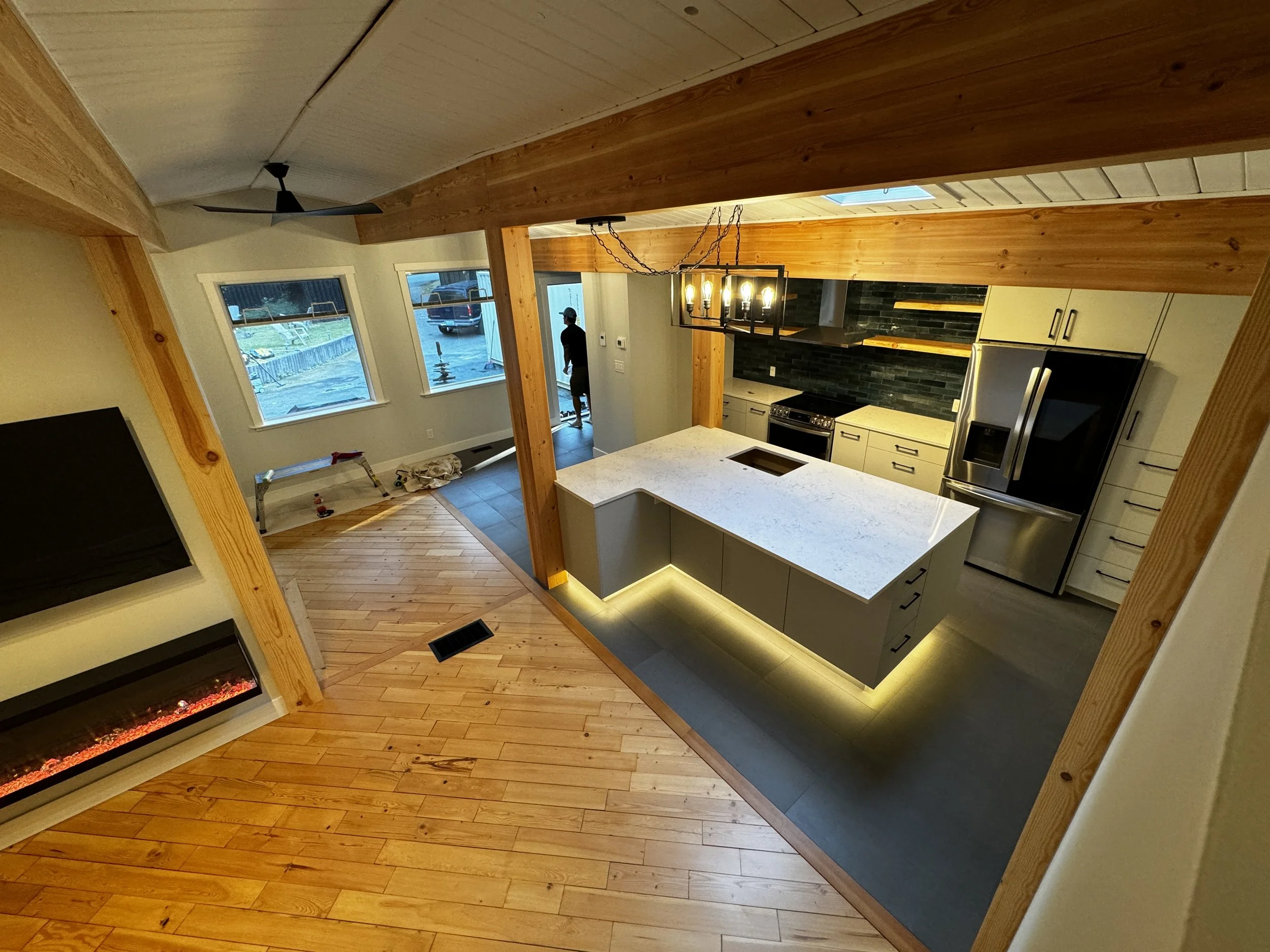 How We Transformed Painted Beams Into Natural Wood Features | Comox Valley Kitchen Renovation