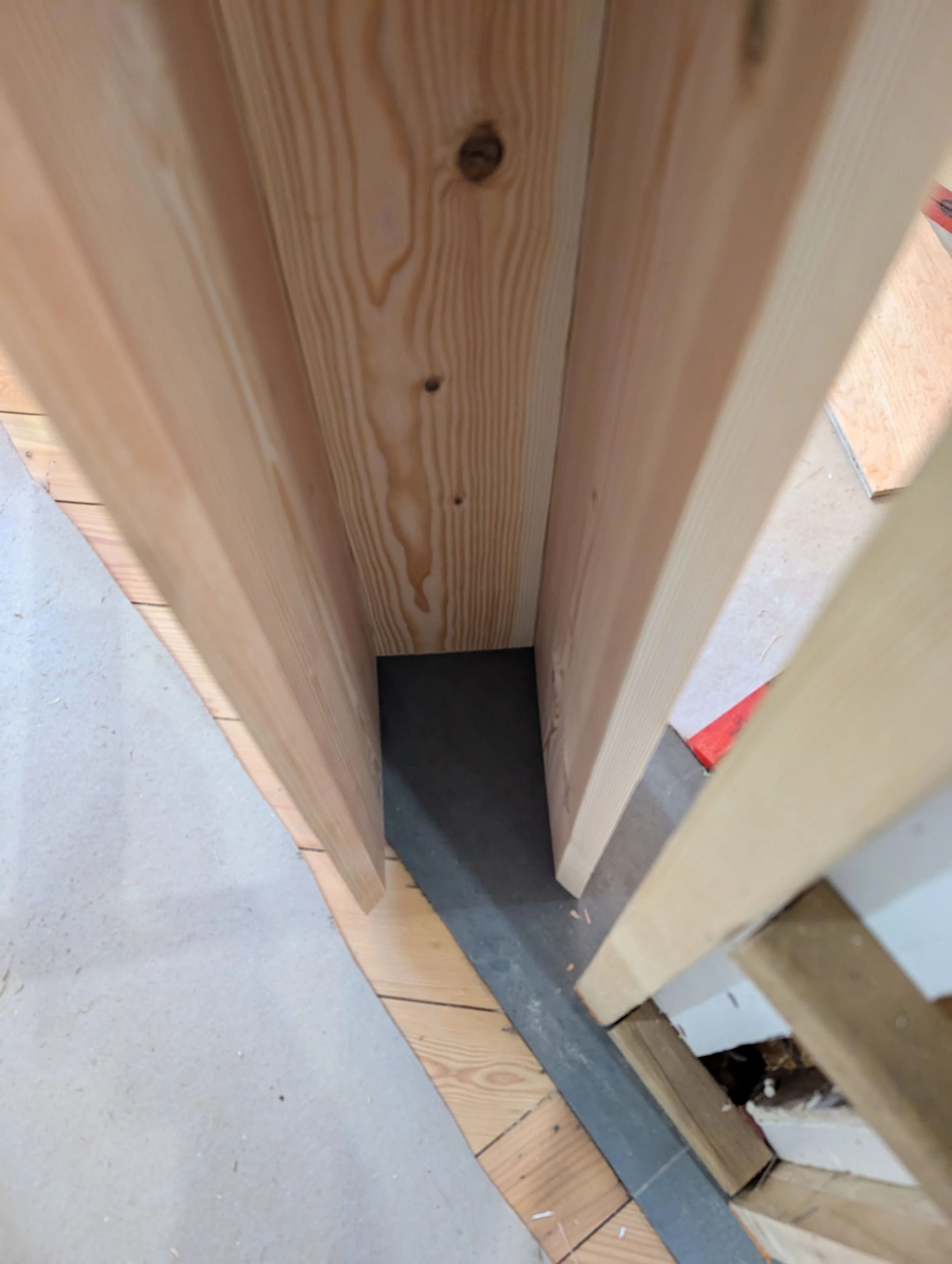 Each timber wrap is built with three sides pre-glued before going up. This lets us:
