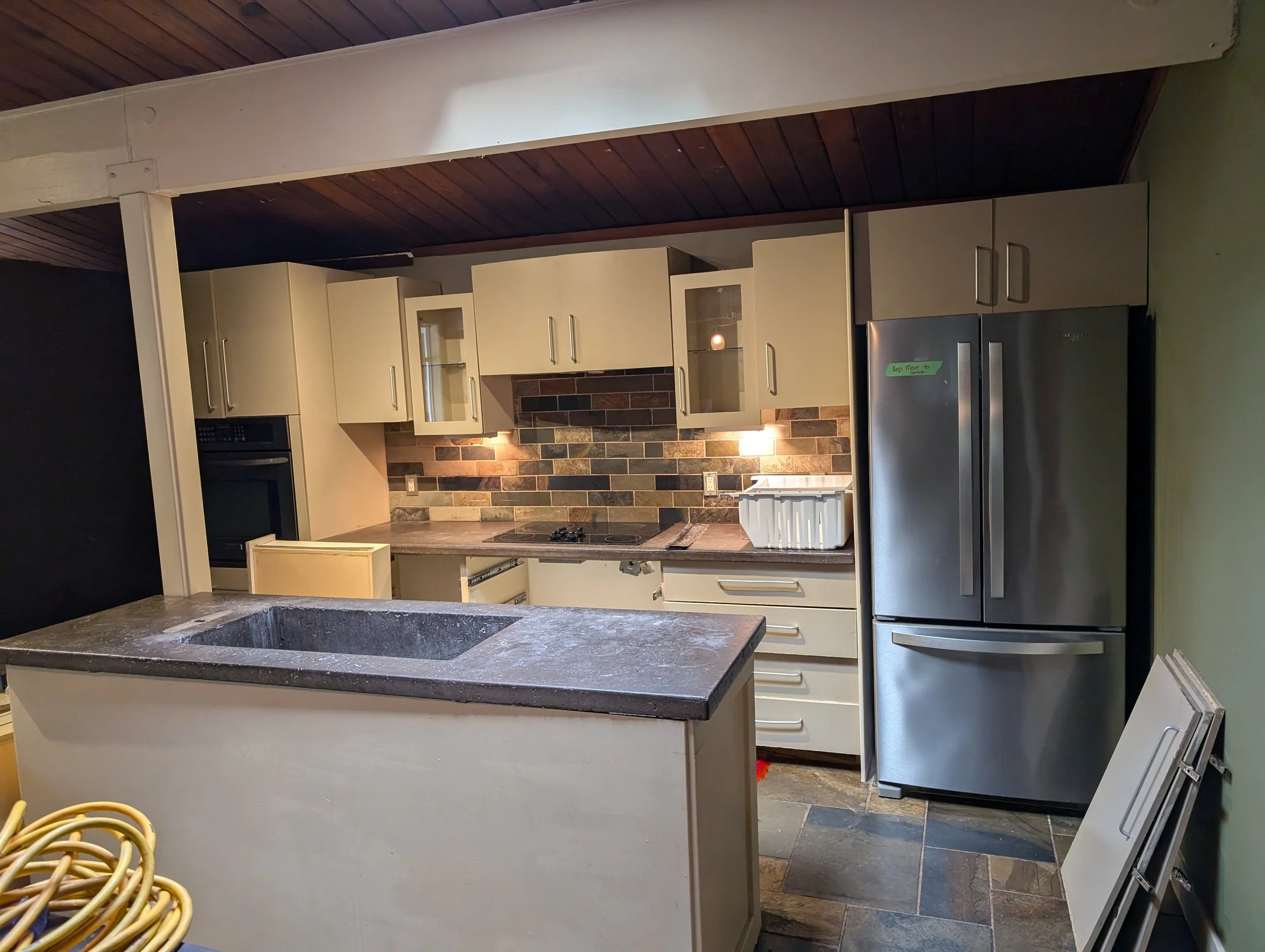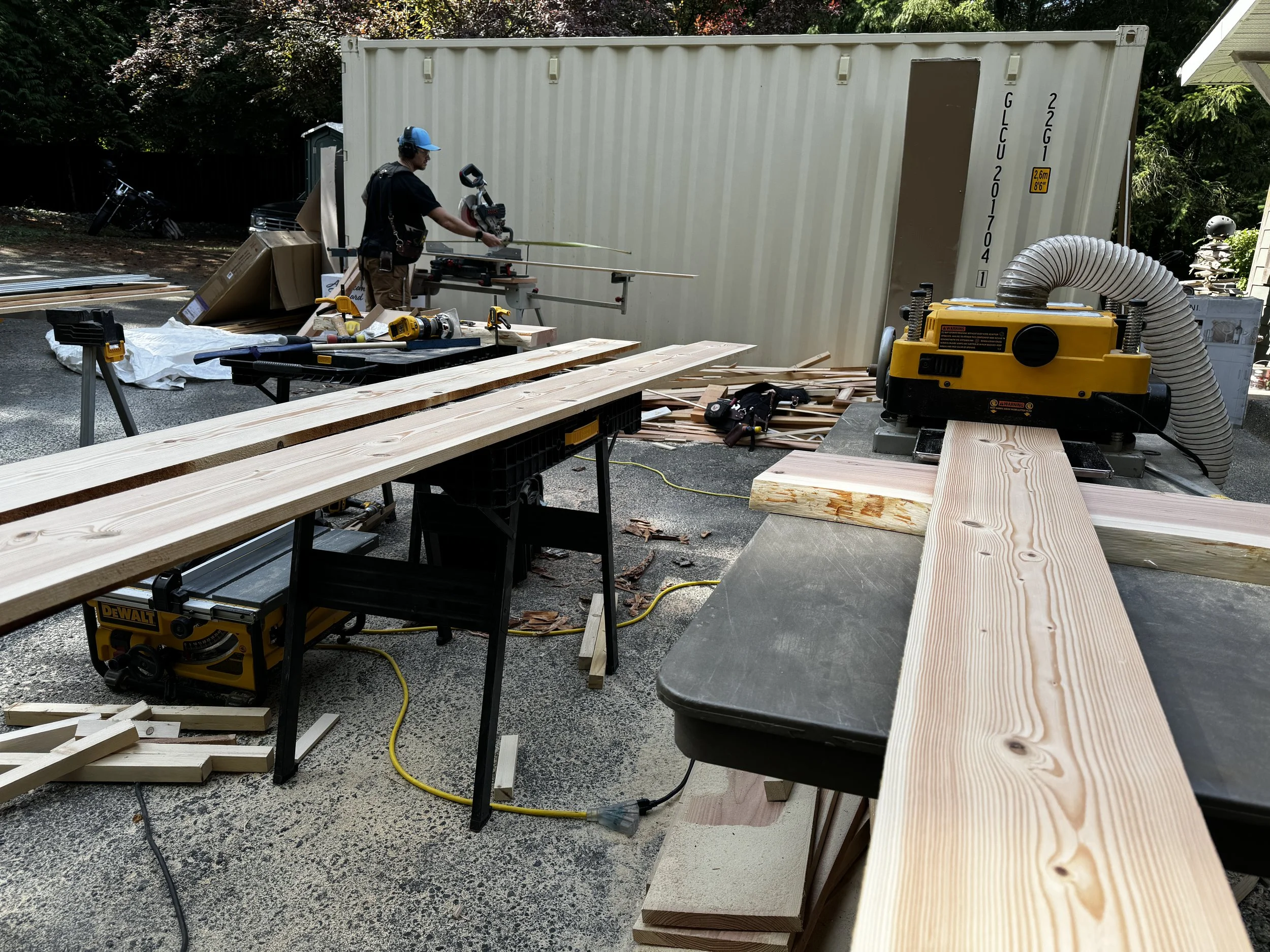 We started with raw slabs and took the time to dry them out fully before working them down. Proper drying is crucial — it reduces the chance of shrinkage or warping after install, especially in a high-traffic space like a kitchen where humidity levels can shift.