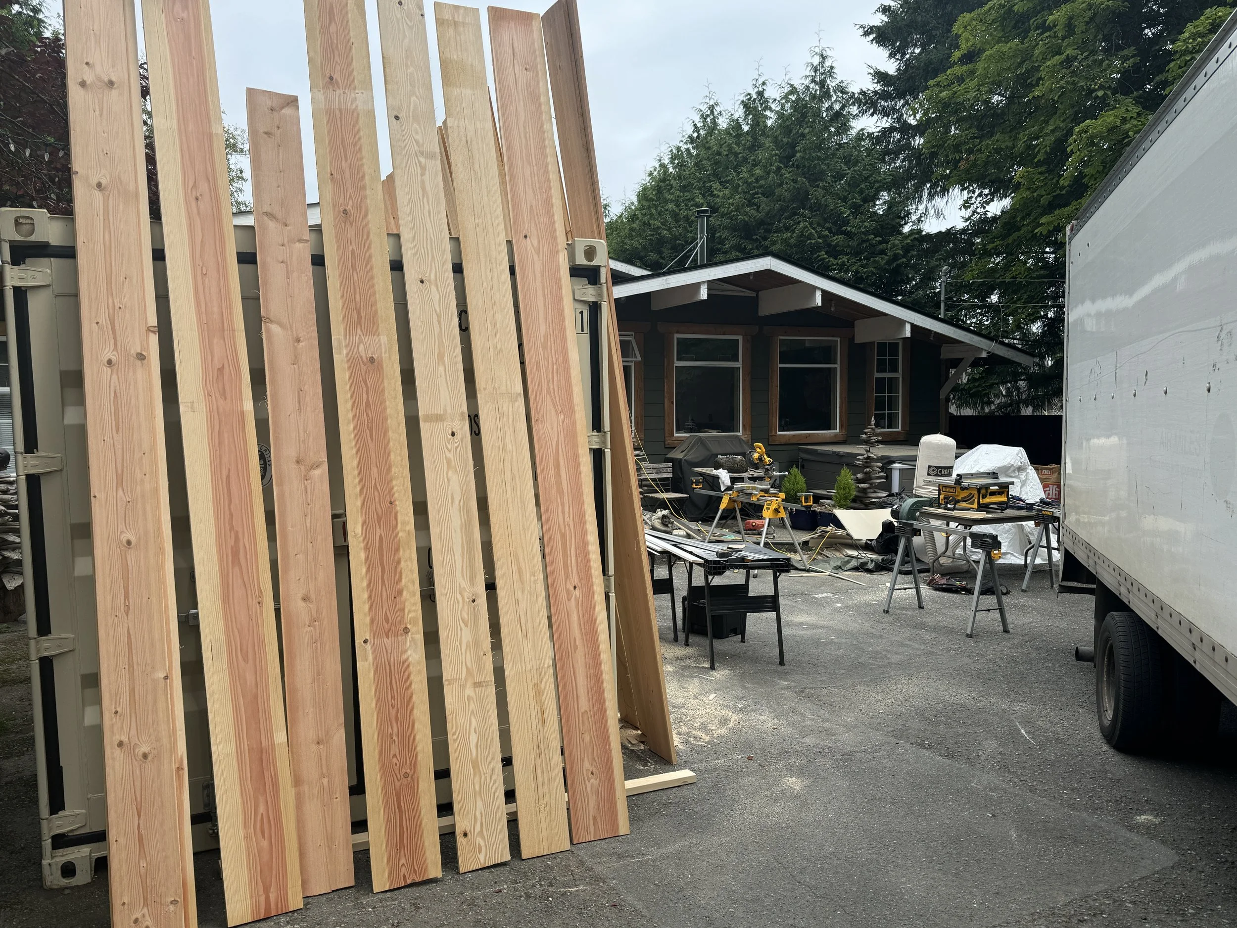 To make sure the wraps matched the natural, bright, grounded feel the homeowners wanted, we sourced slabs from a local mill right here in the Comox Valley. Using locally milled wood not only supports other small businesses in our community — it also gives us more control over the final product, from grain selection to finish quality.