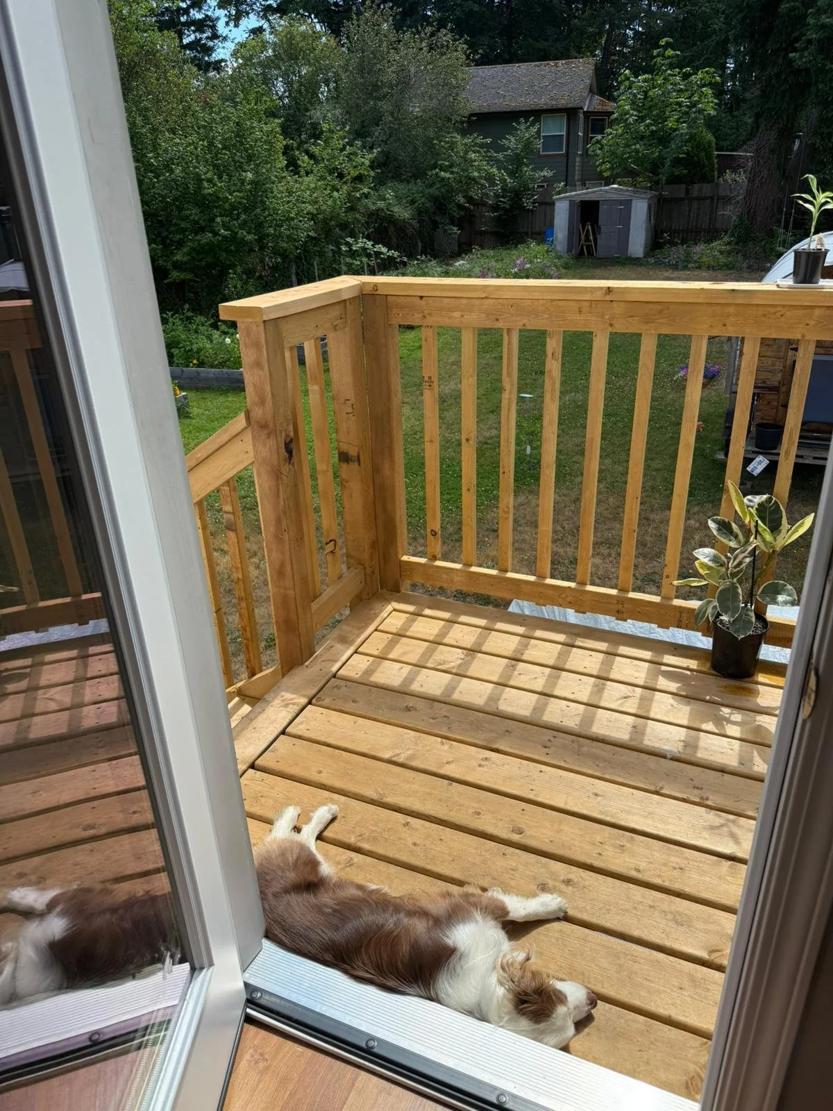 Now, she can stretch out on the landing, feel the breeze, and head straight into the backyard whenever she pleases.