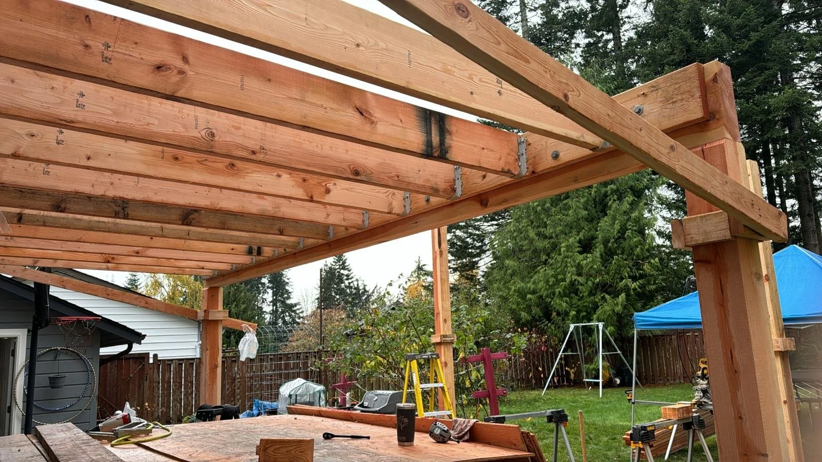 With Campbell River’s long wet season, they wanted more than just a lounging zone — they needed functional, covered storage that would actually stay dry year-round.