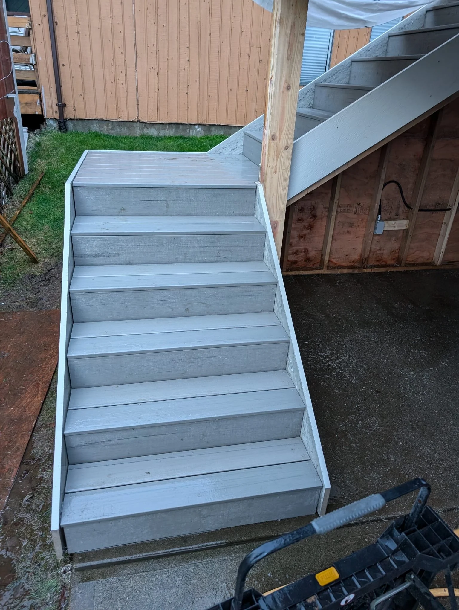 ✔️ Wrapped the stairs and deck in rot-resistant siding