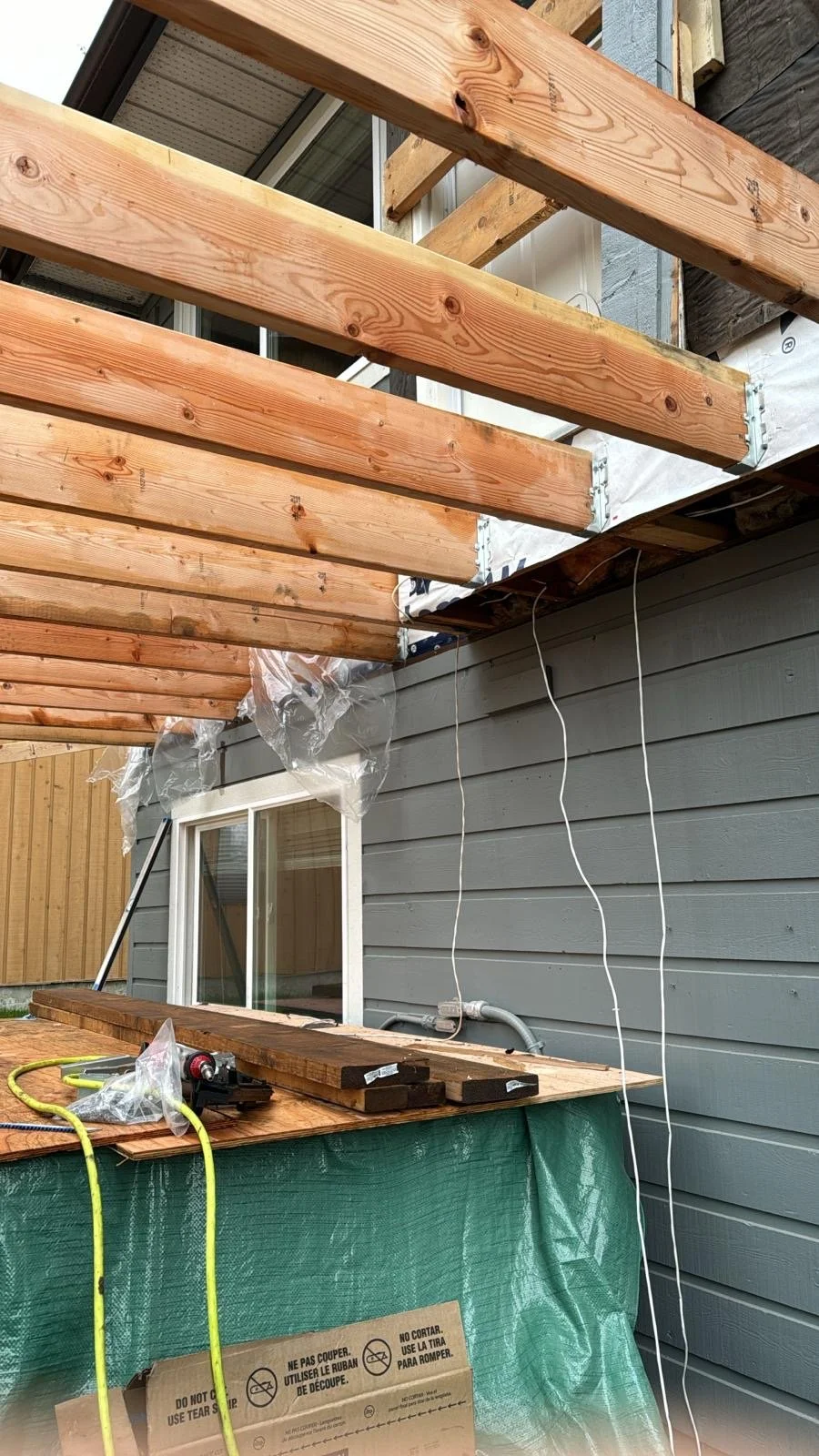 We replaced the old drop beam with a flush beam to raise headroom underneath the deck. This change keeps the framing tight and clean while improving the usable space below.