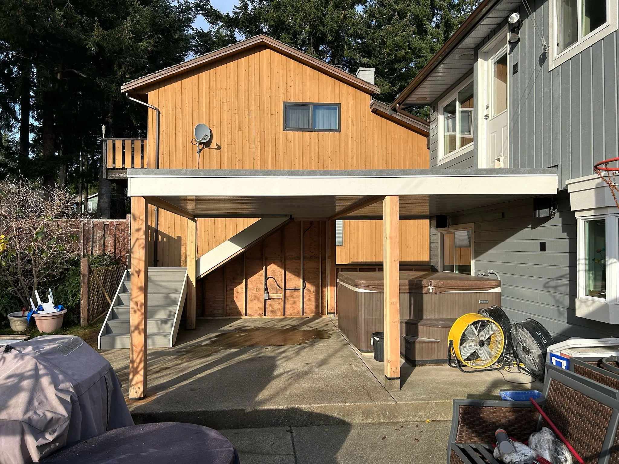 👉 The homeowners already had a hot tub underneath the existing deck — but the space around it was going to waste. It wasn’t dry, organized, or protected from the elements.